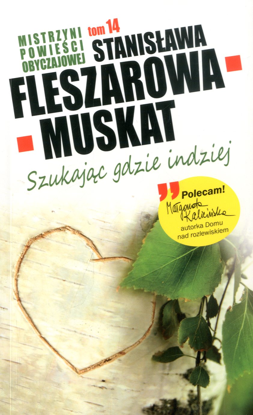„Szukając gdzie indziej” to powieść dla dorosłych w każdym wieku. Opowiada o słodko-gorzkim romansie młodego leśniczego z Kaszub z kobietą z miasta. Doświadczona pierwszym małżeńskim kryzysem, bohaterka powieści próbuje w wiejsko-leśnej głuszy poukładać swoje życie. Odwzajemnia rozbudzoną miłość leśniczego. Lecz czy samo uczucie wystarczy, by zechciała porzucić pełne uroku i wygód życie w mieście? Jak zawsze u Fleszarowej-Muskat, akcja książki toczy się na realistycznie odmalowanym przez autorkę, pełnym kontrastów tle społecznym. [wydawca]